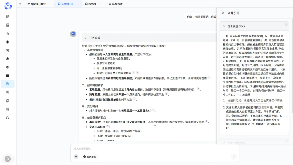 • 智能知识库:集成文档切片、解析编辑及基于 RAG 的检索增强构建。