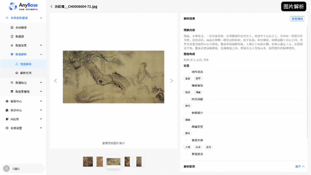 • 智能解析:提供文本(Markdown 提取)、图像(内容理解)及数据表语义的深度解析与预览。